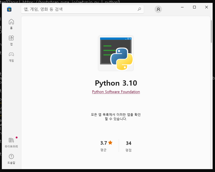 windows환경에서는 python을 입력하면 MicroSoft Store로 넘어가서 다운로드 받을 수 있다.