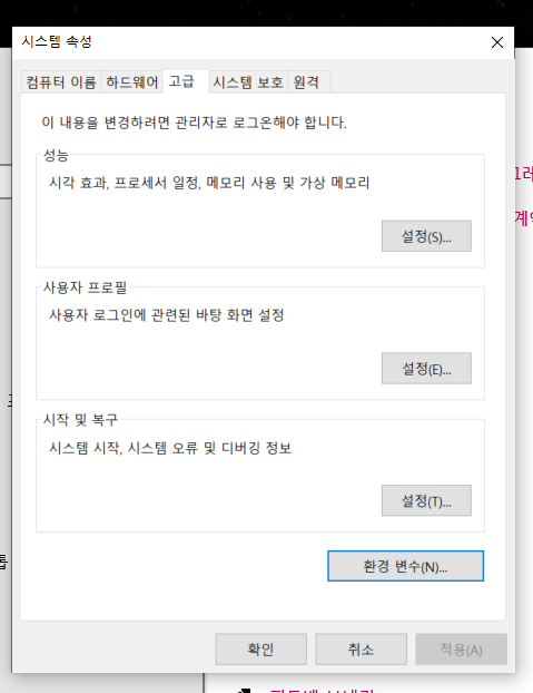 '환경 변수' 클릭