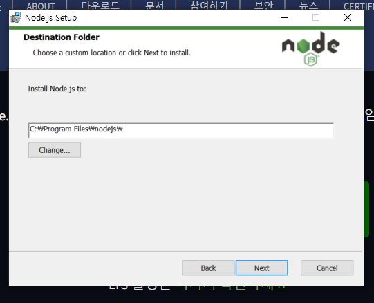 (나는 찾기 편하려고 C 밑에 바로 설치했다 "C:\nodejs\")